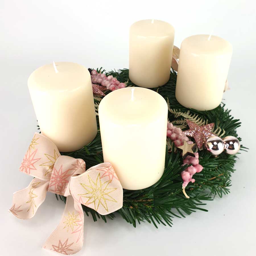 Adventkranz gewickelt creme rosa