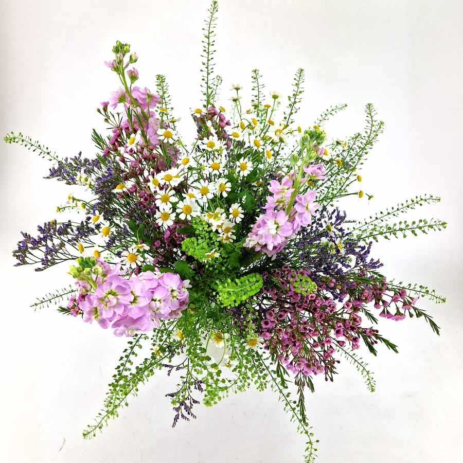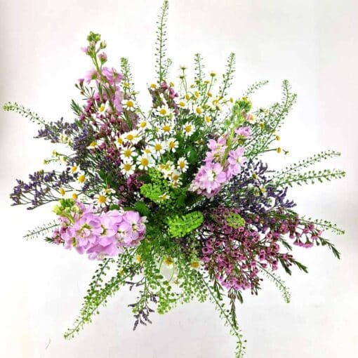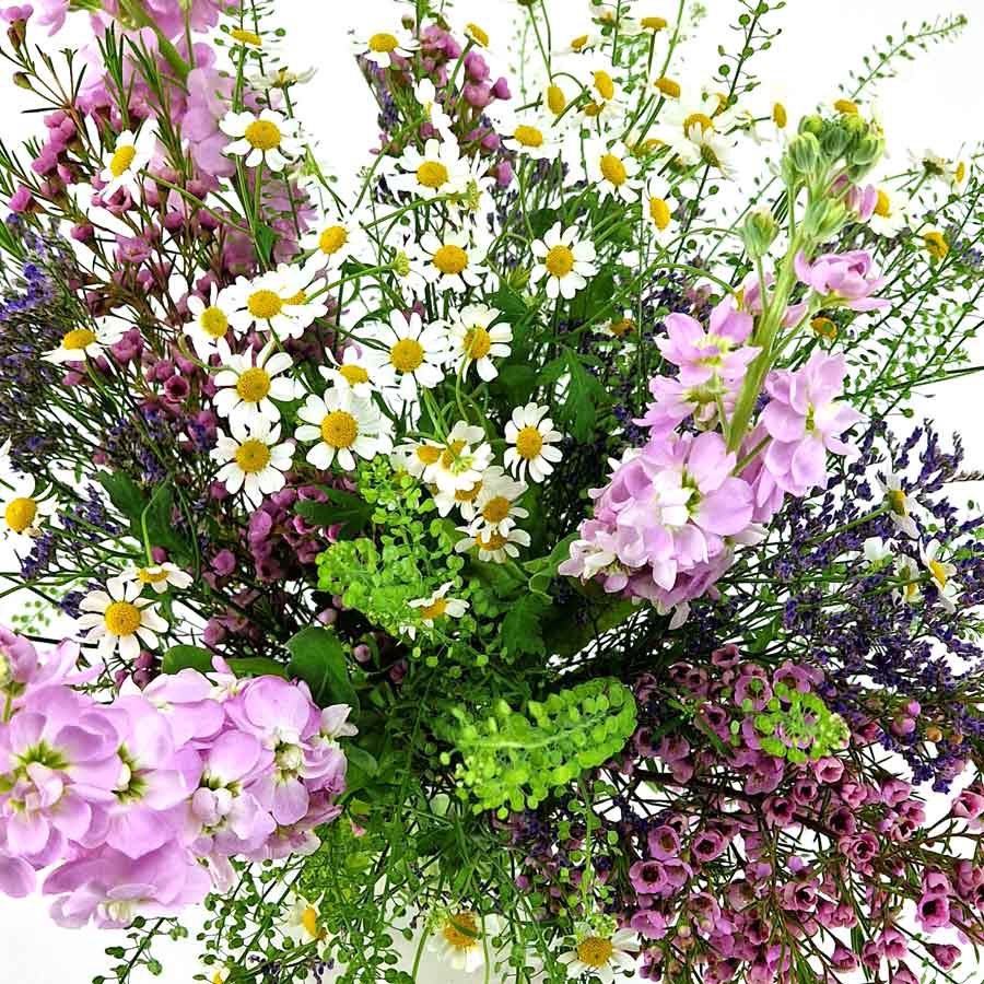 Die luftige Anordnung und die abwechslungsreichen Blütenformen verleihen ihm eine wilde, ungezähmte Schönheit – fast so, als wäre er frisch auf einer duftenden Wiese gepflückt. Perfekt geeignet als liebevolles Geschenk für besondere Menschen oder um sich selbst ein Stück Natur ins Zuhause zu holen.